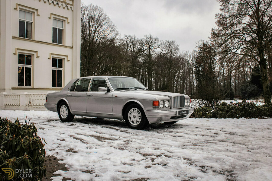 Dieser Bentley Brooklands besticht durch seine beeindruckenden und stilvollen Linien, die durch die atemberaubende Farbkombination Silber Metallic mit schwarzer Lederausstattung perfekt ergänzt werden. Die Karosserie ist in ausgezeichnetem Zustand, und auch die verschiedenen Chrom- und Zierleisten sind makellos und glänzend. Die Türen schließen sicher und gut, und die Karosserieteile passen perfekt zusammen. Das ist natürlich von dieser Limousine der Königsklasse zu erwarten. Es ist offensichtlich, dass dieses gut gepflegte Auto von seinen Besitzern sehr geliebt wurde. Mit Ausnahme einiger kleinerer Schönheitsfehler befindet sich dieser Bentley in einem ausgezeichneten Zustand. Auch der Innenraum ist in einem außergewöhnlich guten Zustand. Die schwarzen Ledersitze (oder Sessel) sind bequem. Der luxuriöse Innenraum ist beeindruckend und sehr angenehm. Die schönen und stilvollen Holzverkleidungen sind ebenfalls in ausgezeichnetem Zustand. Die verschiedenen Chrom- und Zierleisten sind ebenfalls in ausgezeichnetem Zustand. Alle Instrumente funktionieren einwandfrei, und das Auto verfügt noch über das originale Radio/Kassettengerät mit CD-Wechsler. Die Sitze sind natürlich mehrfach verstellbar, und dieses Fahrzeug der Königsklasse ist mit verschiedenen luxuriösen Komfortsystemen ausgestattet. Die Innenausstattung (sowohl Teppichboden als auch Dachhimmel) ist noch in ausgezeichnetem Zustand.