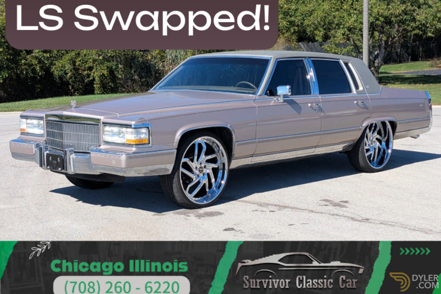Survivor Classic Car Services Chicago ist stolz darauf, diesen maßgeschneiderten 1990 Cadillac Brougham zu präsentieren. Unter der Motorhaube wurde der werksseitige 5.7 Chevy durch einen modernen 5.3l LS-basierten V8 mit Kraftstoffeinspritzung ersetzt. Der Motor wurde vor kurzem zerlegt und mit neuen Nockenwellenlagern, Pleuellagern, Kolbenringen und allen Dichtungen mit OEM-Komponenten sowie einer Aftermarket-Nockenwelle, Stößelstangen und Ventilfedern von Brian Tooley Racing ausgestattet. Darüber hinaus wurde das Getriebe durch ein überholtes 4L60E-Getriebe mit einem 2800-3200 High-Stall-Drehmomentwandler ersetzt. Der Innenraum wurde mit einem Kenwood-Vollbild-Touch-Radio mit USB-Anschluss leicht aufgewertet, das über zwei Verstärker eine massive Q-Bomb-Subwoofer-Box im Kofferraum mit Strom versorgt. Das Soundsystem in diesem Brougham fühlt sich an wie ein Erdbeben! Der Cadillac war in einem Musikvideo von Adam Calhoun zu sehen, allerdings wurde die Tarnfolie entfernt.