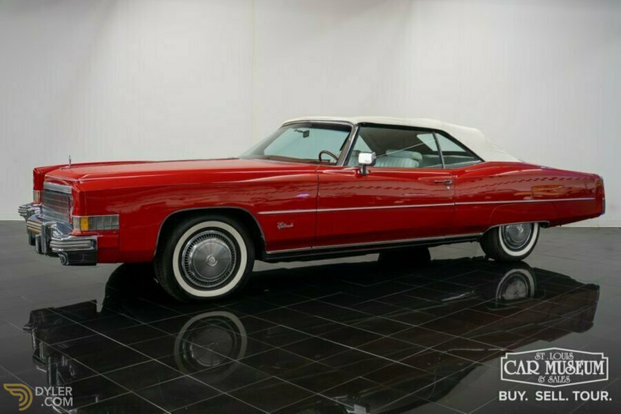 Hier wird ein wunderschön erhaltenes Cadillac Eldorado Cabriolet von 1974 in der werkseitig aufgetragenen roten Dynasty-Lackierung mit weißem Nadelstreifen, weißem Originalverdeck und weißer Lederausstattung mit mittelrotem Armaturenbrett und Teppichen angeboten! Unter der Motorhaube befindet sich der nummerngleiche 500ci V8 Motor mit Turbo-Hydramatic 3-Gang Automatikgetriebe! Zu den Optionen und Ausstattungsmerkmalen gehören eine Klimaanlage, elektrische Fensterheber und Schlösser, elektrische 6-Wege-Komfortsitze, ein AM/FM/8-Spur-Audiosystem mit elektrischer Antenne, fernbedienbare Spiegel, ein neigbares und ausziehbares Lenkrad, Sentinel-Lichter, American Classic-Weißwandreifen, ein Beifahrer-Kosmetikspiegel, ein abnehmbarer Mülleimer, Teppichbodenmatten, eine Kofferraum-Gummimatte und eine Reserveradabdeckung.
