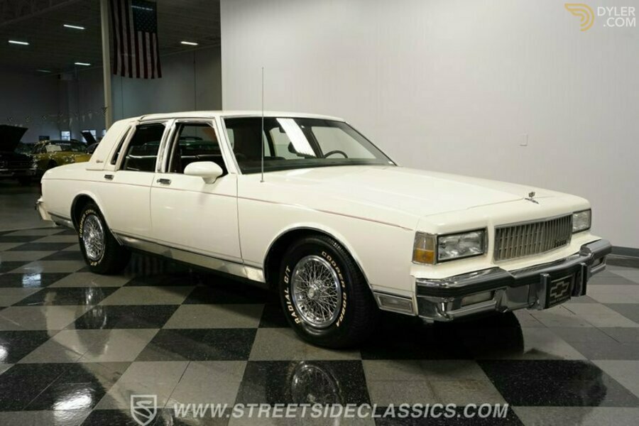 Hersteller: Chevrolet Modell: Caprice Brougham LS Preis: 22995 USD Version: Brougham LS Kraftstoffart: Benzin Getriebe: 4-Gang-Automatik th200-4r Farbe: weiß Innenausstattung: burgunderrot Antrieb: Hinterradantrieb