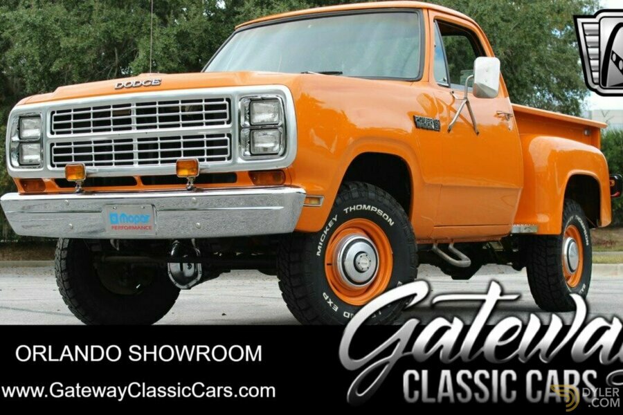 Gateway Classic Cars of Orlando ist stolz darauf, diesen auffälligen 1980 Dodge Power Wagon W150 zu präsentieren, ein wahres Zeugnis des robusten Charmes und der robusten Leistung klassischer amerikanischer Trucks. Dieses besondere Modell fällt durch sein leuchtendes Orange auf, eine Farbe, die nicht nur die Aufmerksamkeit auf sich zieht, sondern auch den abenteuerlichen Geist dieser Ära verkörpert. Das kühne Äußere wird durch ein raffiniertes schwarzes Stoffinterieur ergänzt, das sowohl dem Fahrer als auch den Passagieren einen komfortablen und stilvollen Innenraum bietet.