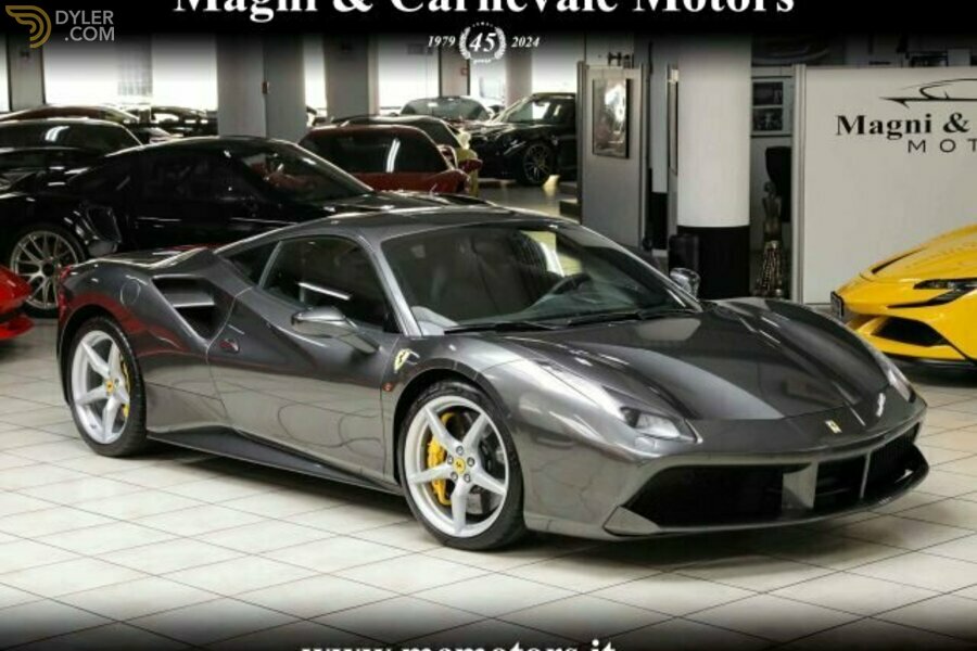 FERRARI 488 GTB AUSSENAUSSTATTUNG: SILVERSTONE-METALLIC-LACKIERUNG INNENAUSSTATTUNG: SCHWARZES LEDER AUSSTATTUNG: Satellitennavigationssystem Zwei-Zonen-Klimaautomatik Parksensoren vorne und hinten Tempomat Geschwindigkeitsbegrenzer