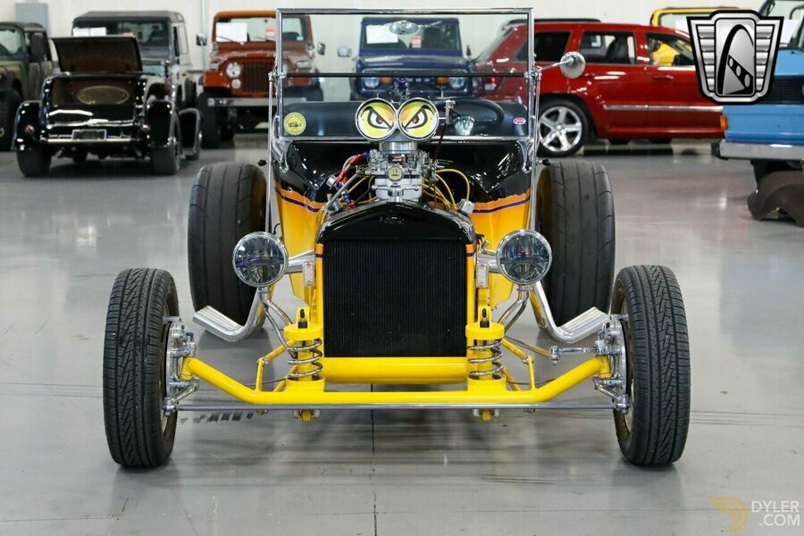 Gateway Classic Cars of San Antonio Austin ist sehr glücklich, diesen 1923 Ford T-Bucket Hot Rod anbieten zu können. In einem gelb-schwarzen Exterieur mit schwarzem Interieur präsentiert dieser T-Bucket den unverwechselbaren Stil, der dieses klassische Hot-Rod-Design seit langem definiert hat. Er wird von einem 350 CID V8-Motor angetrieben, der mit einem TH350-Automatikgetriebe gekoppelt ist und von einem Edelbrock-Ansaugkrümmer und zwei Edelbrock AVS2-Vergasern unterstützt wird. Der Innenraum verfügt über ein GT Grant-Lenkrad und Sicherheitsgurte in einem traditionellen offenen Cockpit-Layout. Dieser T-Bucket ist mit Weld Racing-Felgen ausgestattet, die hinten mit Mickey Thompson ET Street S/S-Reifen und vorne mit Falken Pro G4-Reifen ummantelt sind, was zu seiner erkennbaren Haltung beiträgt. Die Wilwood-Scheibenbremsen vorne und hinten sorgen für eine diesem Setup angemessene Bremsleistung. Insgesamt bietet die Kombination aus Antriebskomponenten, Rad- und Reifenauswahl sowie die Gesamtpräsentation ein klassisches T-Bucket-Erlebnis mit ausgeprägtem Hot-Rod-Charakter.