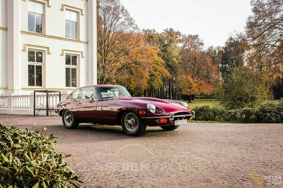 Der Wagen wurde ursprünglich nach Kanada geliefert. Nachdem er lange Zeit (ca. 18 Jahre) in einer Garage gestanden hatte, erwarb der letzte Besitzer diesen E-Type 2007 und begann mit einer professionellen Body-Off-Restauration. Während der Restaurierung wurde ein umfangreicher Fotobericht angefertigt, der zeigt, dass sich der Wagen vor Beginn der Restaurierung noch in einem ausgezeichneten Zustand befand. Der Wagen wurde komplett zerlegt, und jedes Teil wurde einzeln restauriert und neu lackiert. Die Karosserieteile wurden im originalen und stilvollen Regency Red lackiert, und auch der gesamte Chrom wurde erneuert. Die perfekt passenden Chromspeichenräder mit Flügelmuttern wurden ebenfalls montiert. Die verschiedenen Gummiteile und Verkleidungen sind natürlich auch komplett neu. Das Ergebnis ist ein einzigartiges Jaguar E-Type Coupé in hervorragendem und beeindruckendem neuwertigem Zustand.