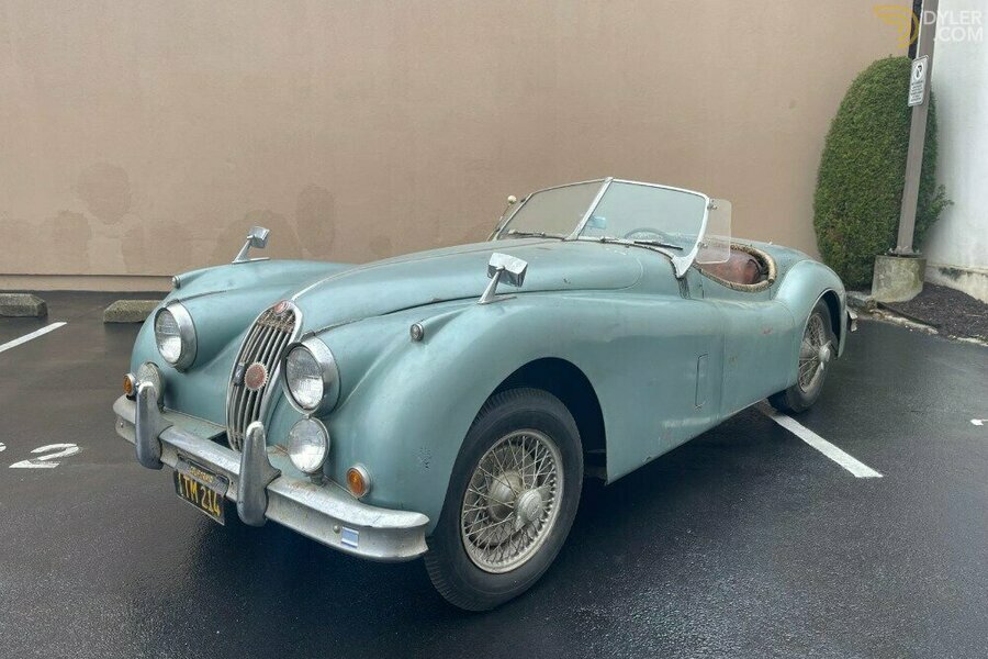 Gebraucht, 1955er Jaguar XK140 Roadster: Fahrzeug mit übereinstimmenden Nummern aus Kalifornien. Dieser 1955er Jaguar XK140 Roadster ist ein Fahrzeug mit übereinstimmenden Nummern aus Kalifornien, das seit etwa 1987 stillsteht und sich seit 1967 im Besitz derselben Familie befindet. Ein spannendes Projekt, das einer unkomplizierten Restaurierung bedarf. Hellblau metallic mit einer maßgefertigten Innenausstattung. Der Motor läuft, aber die Bremsen haben keinen Pedaldruck. Ein komplettes Fahrzeug, das sehr original ist und noch nie restauriert wurde. Insgesamt sehr geradlinige Karosserie und solider Unterboden. Dieser XK140 Roadster stellt eine spannende Gelegenheit für den Liebhaber dar, der nach einem lohnenden Restaurierungsprojekt sucht. Matching Numbers Kalifornien-Fahrzeug Seit 1967 im Besitz derselben Familie Seit 1987 stillgelegt Sehr originales Fahrzeug, das noch nie restauriert wurde Preis: 39.500 $