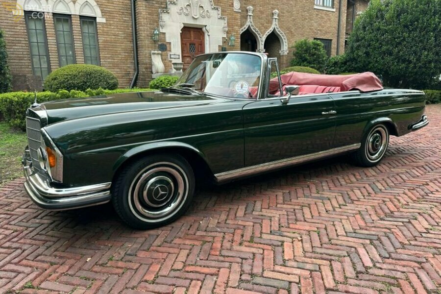 Dieses Mercedes-Benz 250SE Cabriolet aus dem Jahr 1967 ist ein Exemplar für den europäischen Markt, das in den letzten Jahren mit einem Kostenaufwand von fast 35.000 $ professionell restauriert wurde. Die Quittungen für die gesamte mechanische Überholung sind im Lieferumfang enthalten (+/- $20.000). Der Wagen wurde in dunkelgrünem Metallic neu lackiert und trägt ein schwarzes Verdeck mit rotem Kofferraum. Im Innenraum sind die Vordersitze und die Rückbank mit rotem Leder bezogen und mit einem Becker Europa AM/FM-Radio sowie einer VDO-Uhr und -Instrumenten ausgestattet. Für den Antrieb sorgt ein 2,5-Liter-Reihensechszylinder mit Benzineinspritzung, geschaltet wird über ein Viergang-Schaltgetriebe. Weitere Ausstattungsmerkmale sind Scheinwerfer nach US-Spezifikation und Hella-Fernscheinwerfer sowie Servolenkung, Scheibenbremsen und 14-Zoll-Stahlräder mit farblich abgestimmten Felgenhörnern.