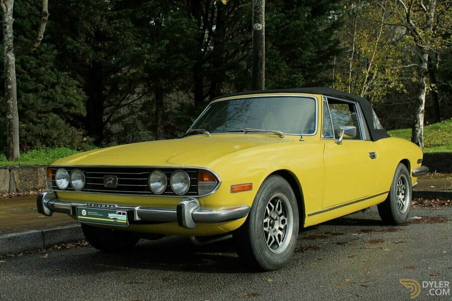 Fahrzeug in Inca Yellow Farbe, die kurz nach dem Erwerb neu lackiert wurde, bleibt bis heute mit einem immer noch intensiven Glanz, obwohl einige Korrekturen vorgenommen werden müssen. Das schwarze Mohair-Verdeck wurde gleichzeitig mit der Lackierung angebracht, es wurde neu und original von einer renommierten englischen Firma erworben, die sich auf Teile der Marke Triumph spezialisiert hat. Es zeigt derzeit keine Anzeichen von größeren Abnutzungserscheinungen und ist vollkommen wasserdicht, es hat nur einen sehr kleinen Schnitt im Kunststoffglas, am linken Verdeckfenster.